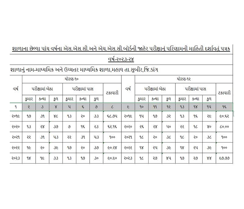 Mahal Campsite Road, Diwan Tembrun, Gujarat 394710. The school was established in the year 2002 since to till date the school provide free education to the tribal children as every children has right to educate. We also provide food, hostel facility, which is totally free and provided from the trust, namely Bhartiya Jansewa Sansthan Sanchalit. The school provide quality education with the Indian culture & ethics to the children. Our children are good at every activities and ranks in SSC & HSC Boards. Secondary & Higher Secondary School - Mahal have a 207 students and increases every year.