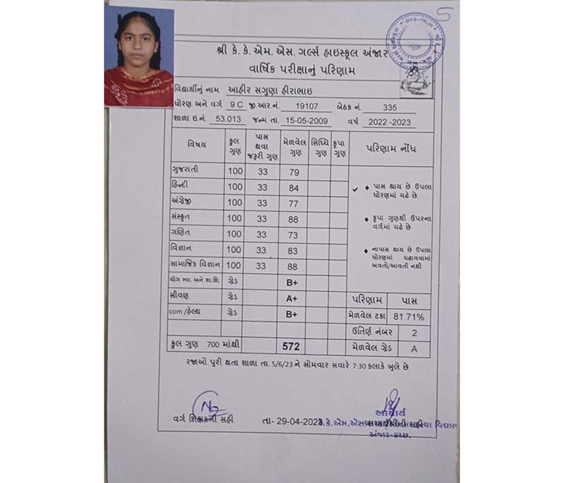 Ahalya Kanya Chhatralay - Anjar, the school was established in the year 2002 since to till date the school provide free education to the tribal children as every children has right to educate. We also provide food, hostel facility, which is totally free and provided from the trust, namely Bhartiya Jansewa Sansthan Sanchalit. The school provide quality education with the Indian culture & ethics to the children. Our children are good at every activities and ranks in SSC & HSC Boards. Rutumbhara Kanya Shala - Santrampur have a 408 students and increases every year.