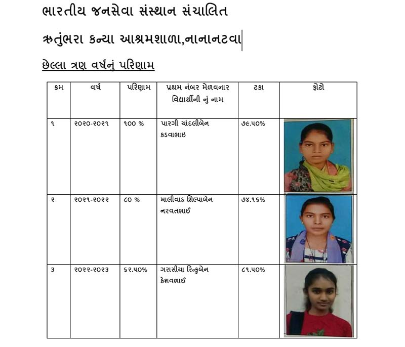 Rutumbhara Kanya Shala - Santrampur, the school was established in the year 2002 since to till date the school provide free education to the tribal children as every children has right to educate. We also provide food, hostel facility, which is totally free and provided from the trust, namely Bhartiya Jansewa Sansthan Sanchalit. The school provide quality education with the Indian culture & ethics to the children. Our children are good at every activities and ranks in SSC & HSC Boards. Rutumbhara Kanya Shala - Santrampur have a 408 students and increases every year.